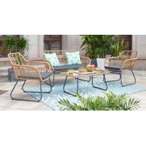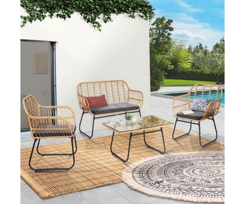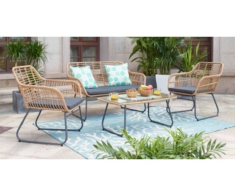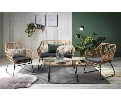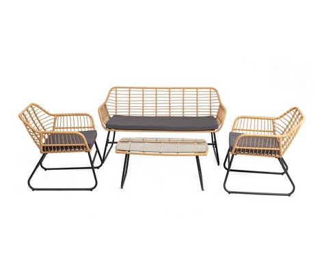 Набор мебели Килсанд стол, диван, 1 кресло (бежевый, серый) GS011 из ротанга