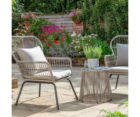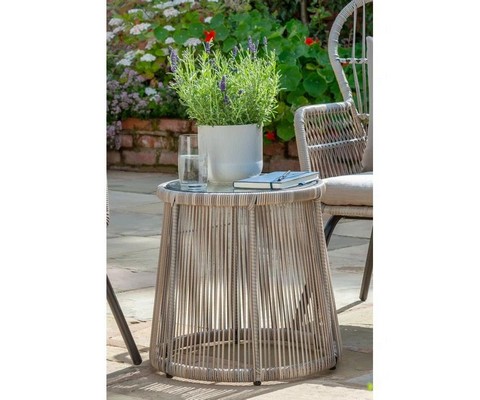 Материал: сталь (каркас), полиэстр (чехол мягкого элемента), искусственный ротанг, стекло (поверхность).