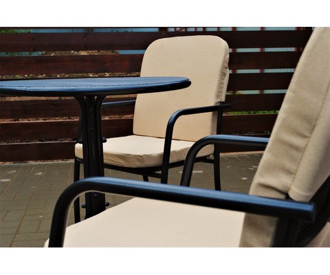 каркас - сталь, поверхность - сетка просечно-вытяжная, подушка - полиэстер, хлопок.