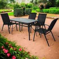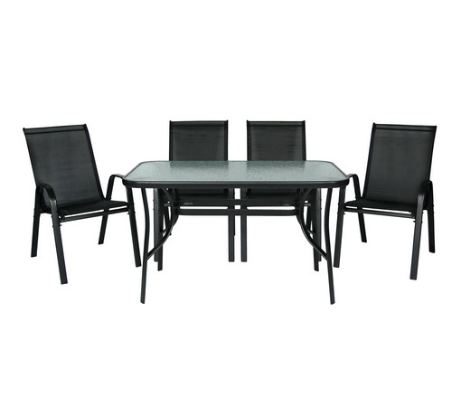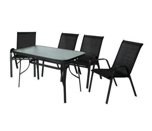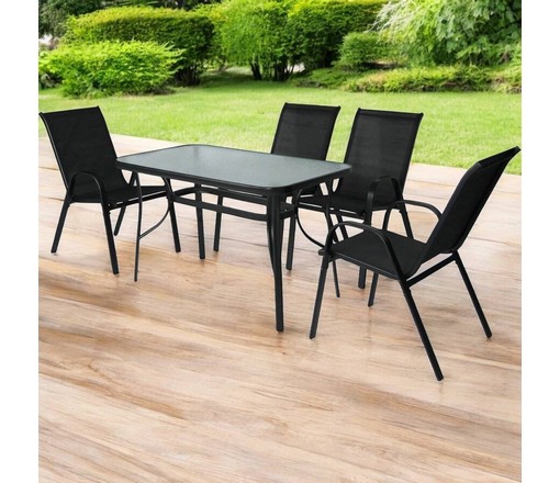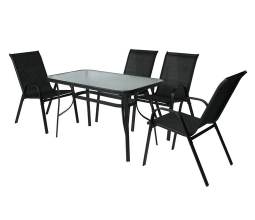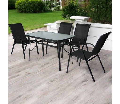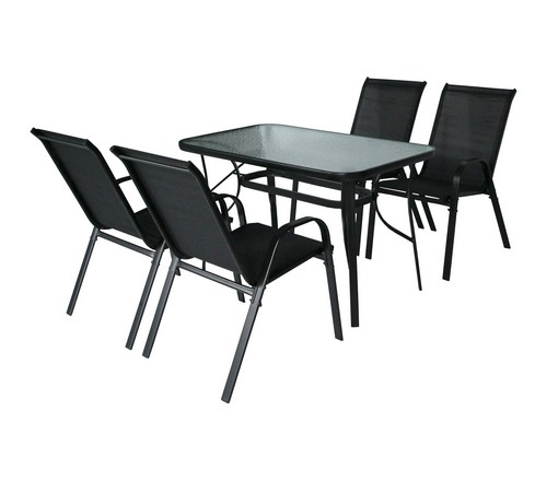 Набор мебели Сан-Ремо (4 кресла+стол 120х70см) каркас черный, сиденья черные