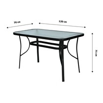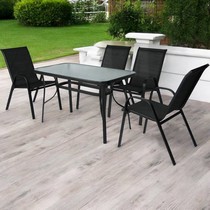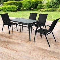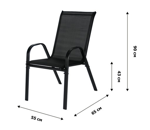 Набор мебели Сан-Ремо (4 кресла+стол 120х70см) каркас черный, сиденья черные на стальном каркасе.