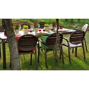 Набор пластиковой мебели, стол Alloro 210 и 8 кресел Palma, цвет coffee