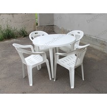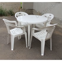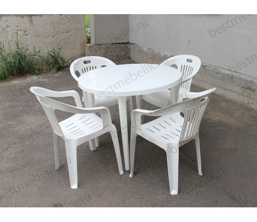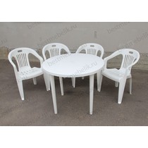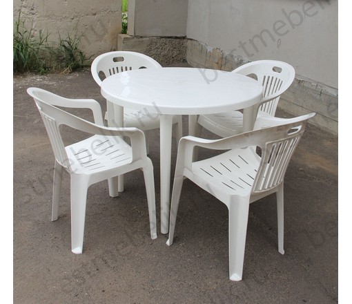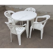 Набор пластиковой мебели состоит из компактного круглого стола и четырех кресел Комфорт.