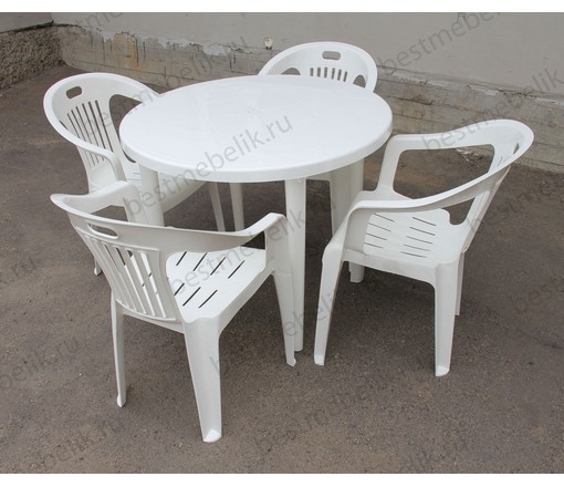 Набор пластиковой мебели стол круглый и 4 кресла Комфорт (белый)