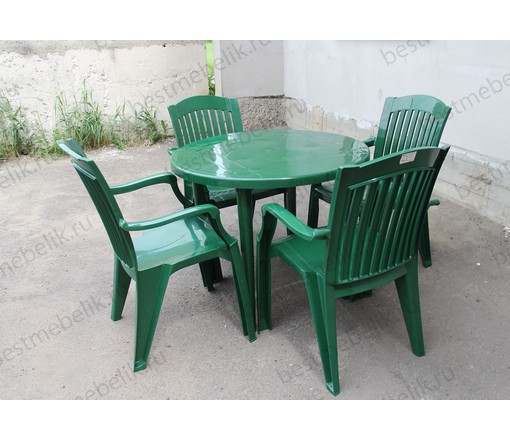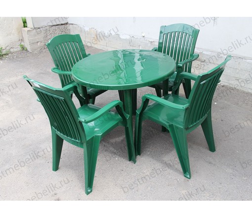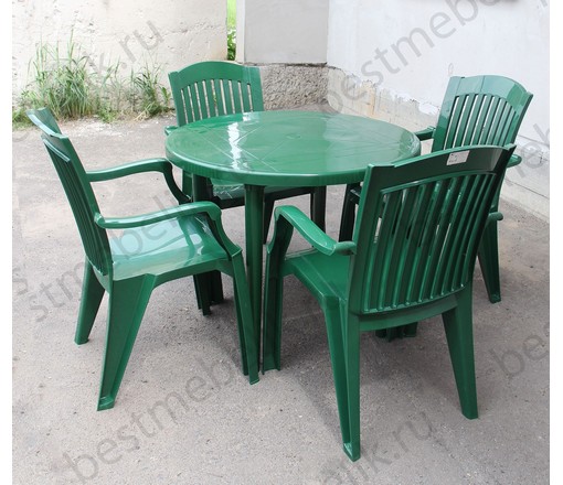 Набор пластиковой мебели стол круглый и 4 кресла Премиум (темно-зеленый)