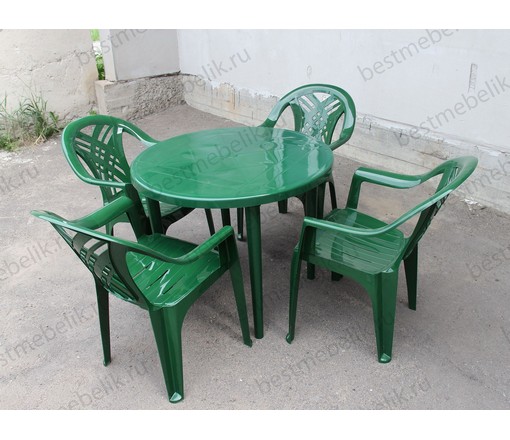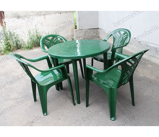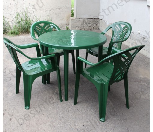 Набор пластиковой мебели стол круглый и 4 кресла Престиж (темно-зеленый)