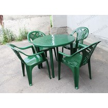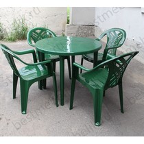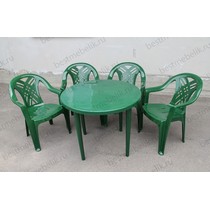 Набор пластиковой мебели состоит из компактного круглого стола и четырех кресел Престиж.