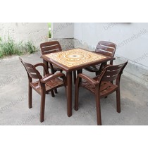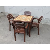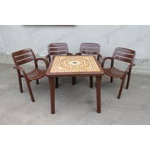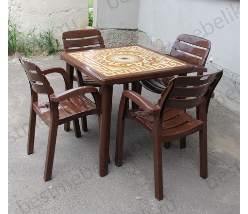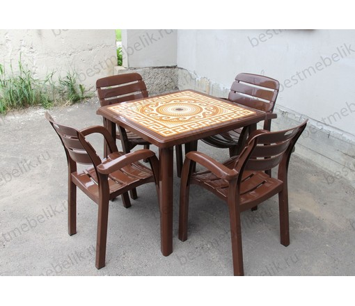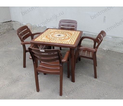 Набор пластиковой мебели стол квадратный Греческий орнамент и 4 кресла Далгория (шоколад)