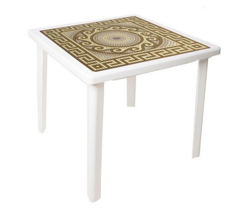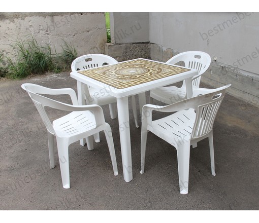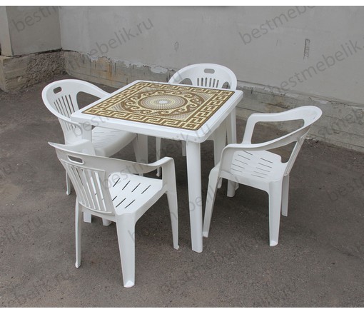 Набор пластиковой мебели стол квадратный Греческий орнамент и 4 кресла Комфорт (белый)