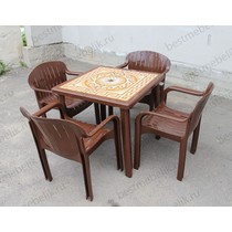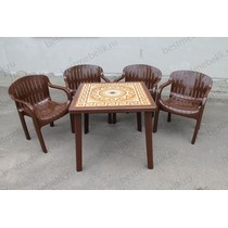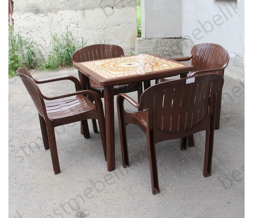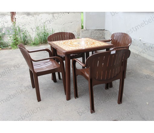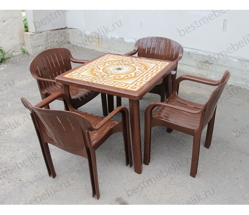 Набор пластиковой мебели стол квадратный Греческий орнамент и 4 кресла Летнее (шоколад)