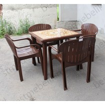 Набор пластиковой мебели состоит из компактного квадратного стола с деколем и четырех кресел Летнее.