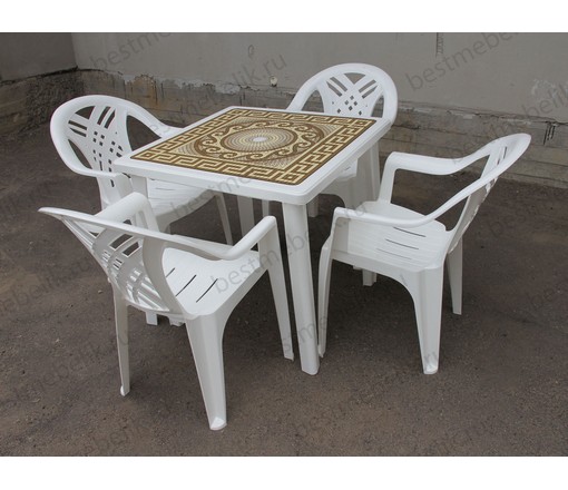 Набор пластиковой мебели стол квадратный Греческий орнамент и 4 кресла Престиж (белый)