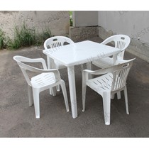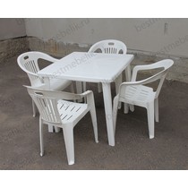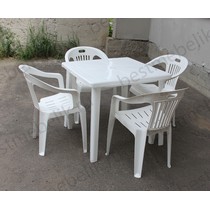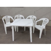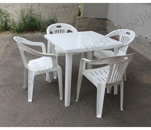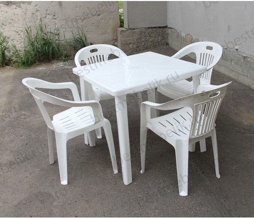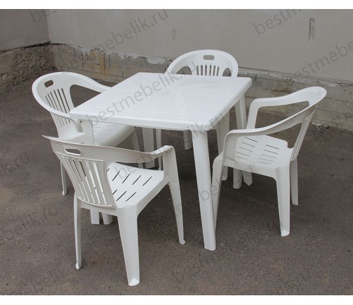 Набор пластиковой мебели состоит из компактного квадратного стола и четырех кресел Комфорт.