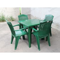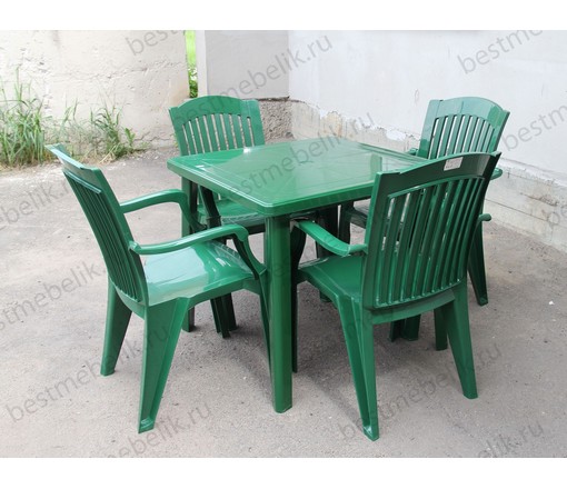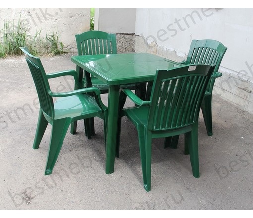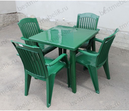 Набор пластиковой мебели стол квадратный и 4 кресла Премиум (темно-зеленый)