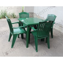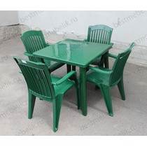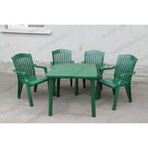 Набор пластиковой мебели состоит из компактного квадратного стола и четырех кресел Премиум.