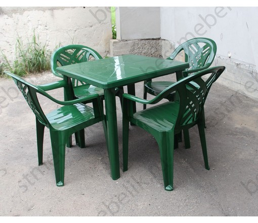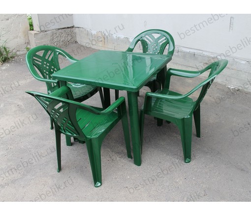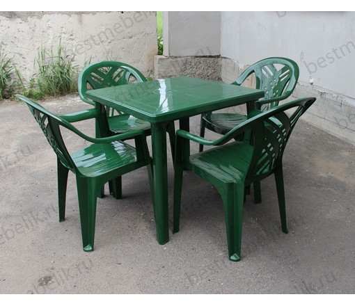 Набор пластиковой мебели стол квадратный и 4 кресла Престиж (темно-зеленый)