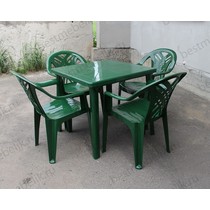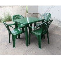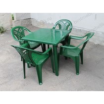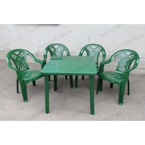 Набор пластиковой мебели состоит из компактного квадратного стола и четырех кресел Престиж.