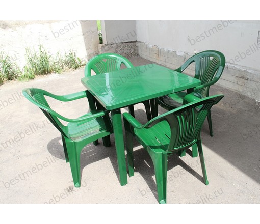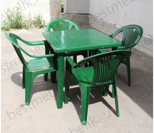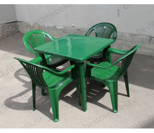 Набор пластиковой мебели стол квадратный и 4 кресла Салют (темно-зеленый)