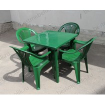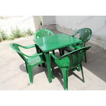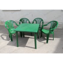 Набор пластиковой мебели состоит из компактного квадратного стола и четырех кресел Салют.