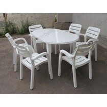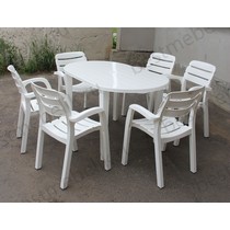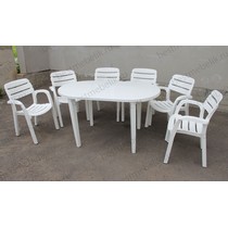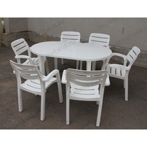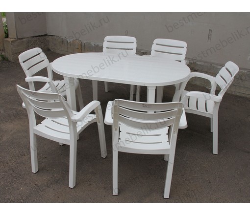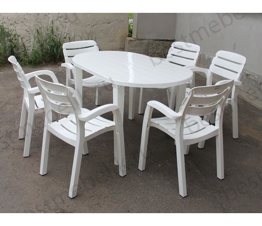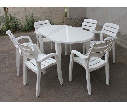 Набор пластиковой мебели состоит из овального стола и шести кресел Далгория.