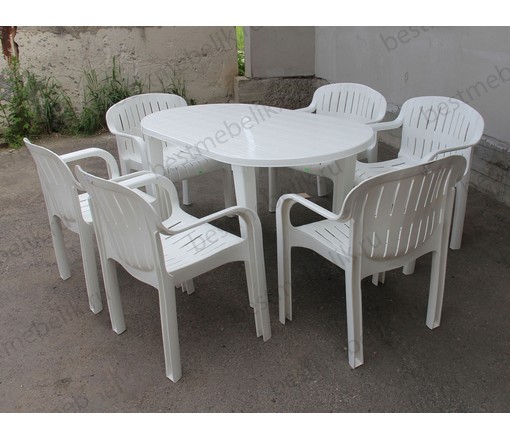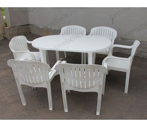 Набор пластиковой мебели стол овальный и 6 кресел Летнее (белый)
