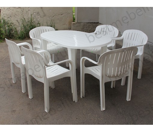 Набор пластиковой мебели состоит из овального стола и шести кресел Летнее.