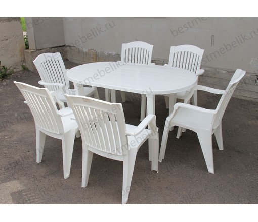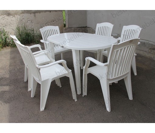 Набор пластиковой мебели стол овальный и 6 кресел Премиум (белый)