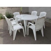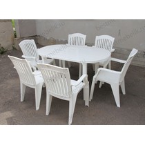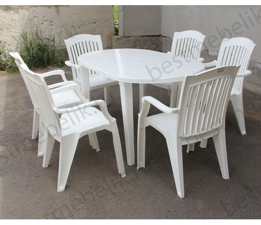 Набор пластиковой мебели состоит из овального стола и шести кресел Премиум.