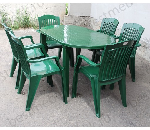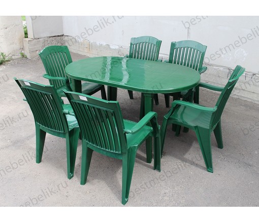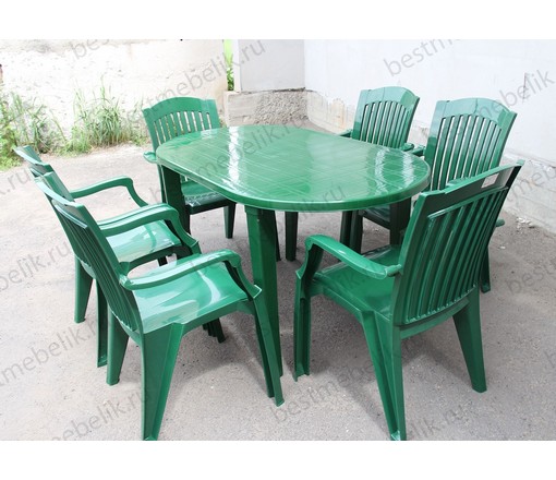 Набор пластиковой мебели стол овальный и 6 кресел Премиум (темно-зеленый)