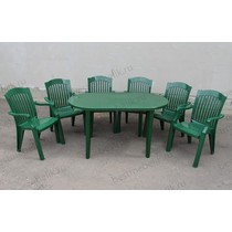 Набор пластиковой мебели состоит из овального стола и шести кресел Премиум.