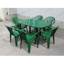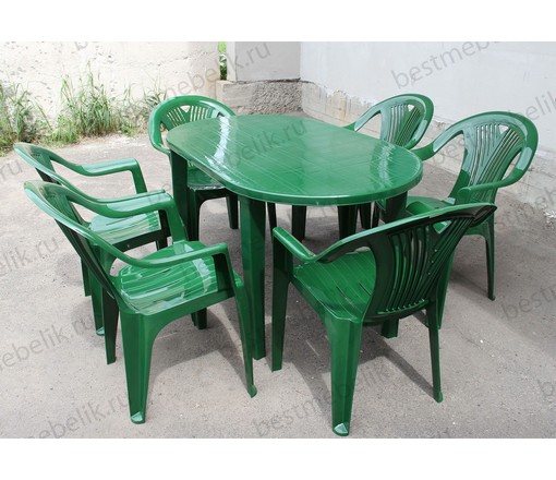 Набор пластиковой мебели стол овальный и 6 кресел Салют (темно-зеленый)