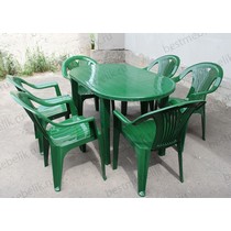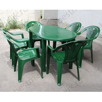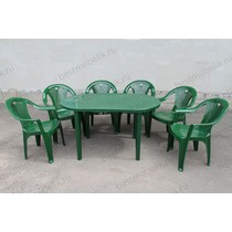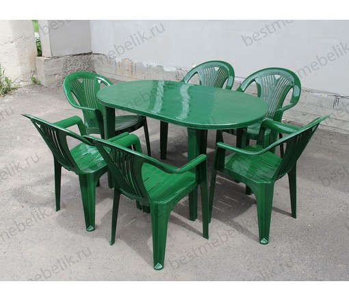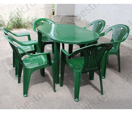 Набор пластиковой мебели состоит из овального стола и шести кресел Салют.