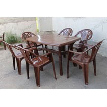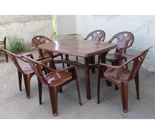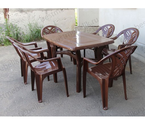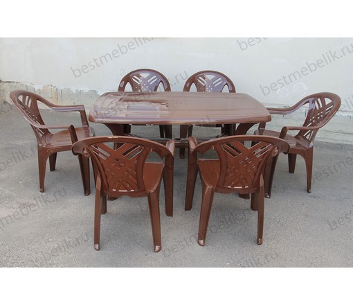 Набор пластиковой мебели стол прямоугольный Премиум и 6 кресел Престиж-2 (шоколад)