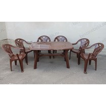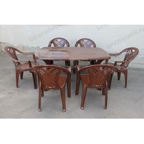 Набор пластиковой мебели состоит из прямоугольного стола Премиум и шести кресел Престиж.