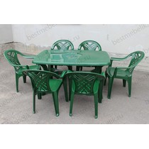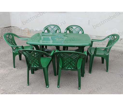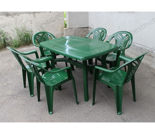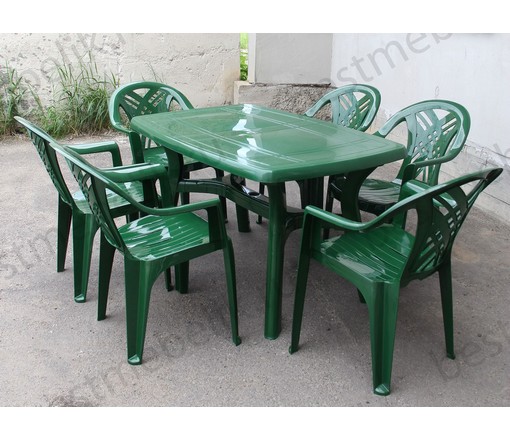 Набор пластиковой мебели стол прямоугольный Премиум и 6 кресел Престиж-2 (темно-зеленый)