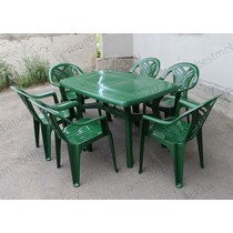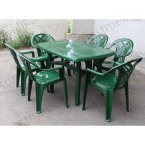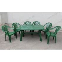 Набор пластиковой мебели состоит из прямоугольного стола Премиум и шести кресел Престиж.