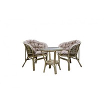 подушка - полиэстер, хлопок, каркас - натуральный ротанг, столешница - стекло.