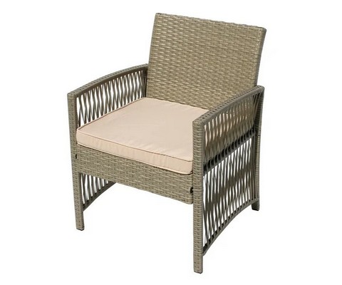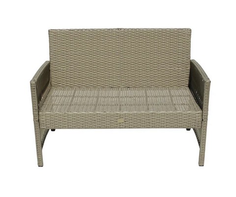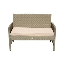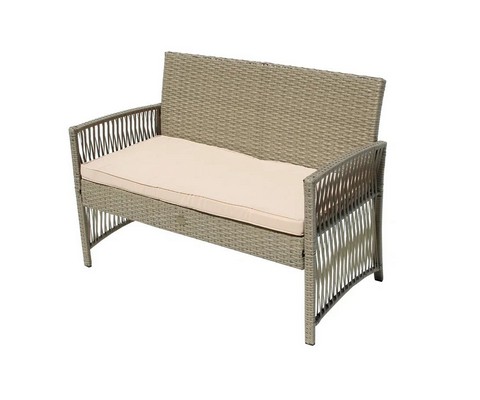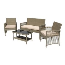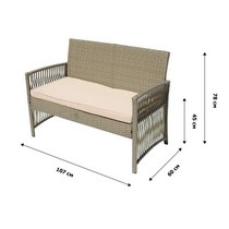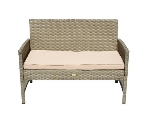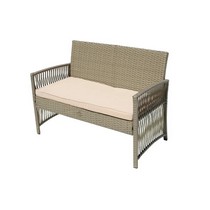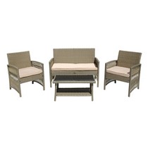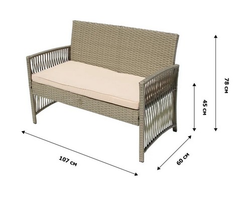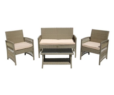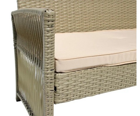 Набор плетеной мебели Лондон (стол, 2 кресла, диван) ротанг серо-бежевый, подушки бежевые