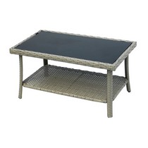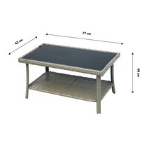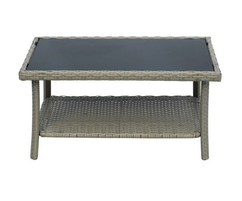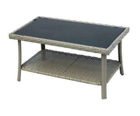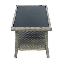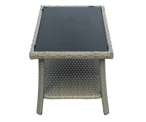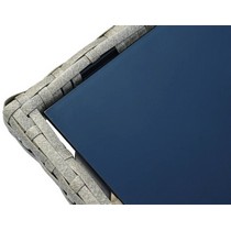 Материалы: сталь (каркас), полиэстер 180г (материал чехла мягкого элемента), холлкон (наполнитель), искусственный ротанг, стекло (столешница).