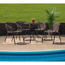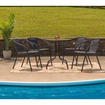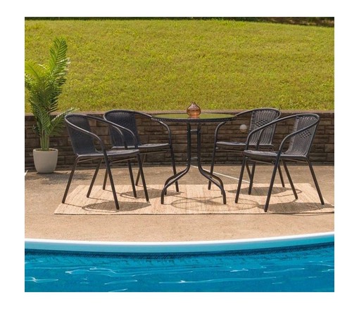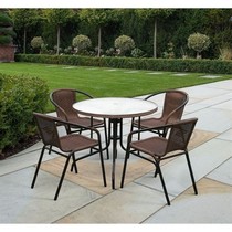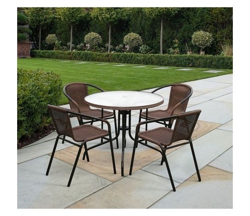 Комплект садовой мебели из круглого стола и четырех кресел.
