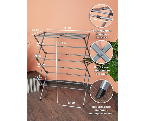 Надежная складная конструкция раздвигается в высоту и по ширине.