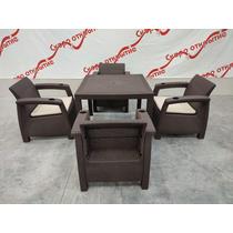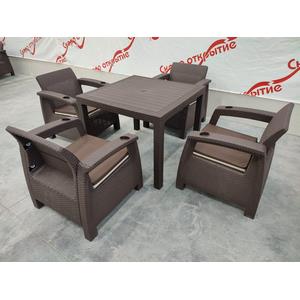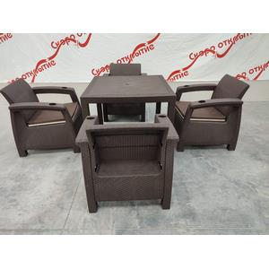 Комплектация: 4 кресла, стол, подушки (бежевый, коричневый)