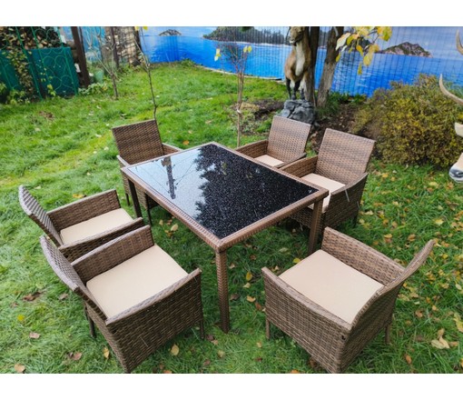 Обеденная группа из искусственного ротанга стол Анкор и 6 кресел
