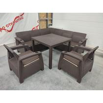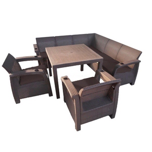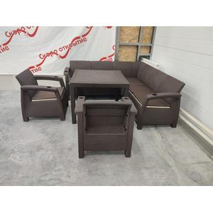 Комплектация: 2 кресла, стол, угловой диван, подушки (бежевый, коричневый)