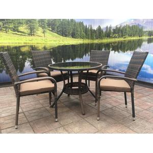 Обеденная группа состоит из круглого стола и четырех обеденных стульев (кресел) с подушками на сиденья.