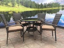 Столешница выполнена из черного закаленного стекла 5 мм с обрамлением по краю из искусственного ротанга.