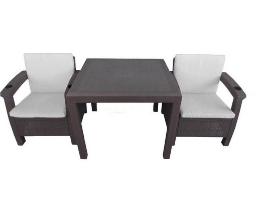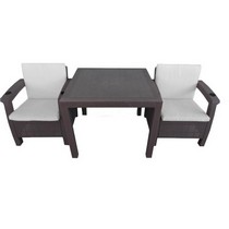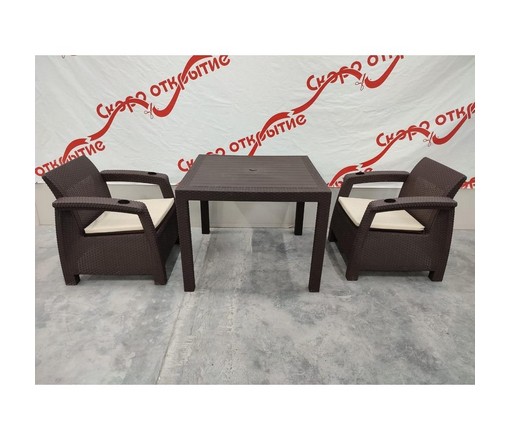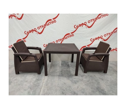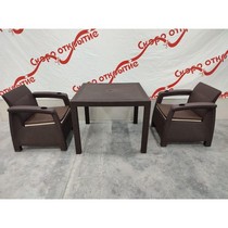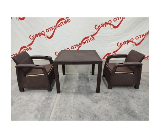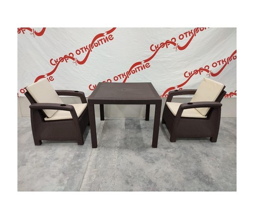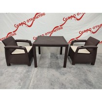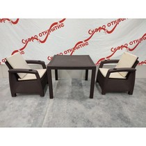 Комплектация: 2 кресла, стол, подушки на сидение и на спинку (бежевый/коричневый)