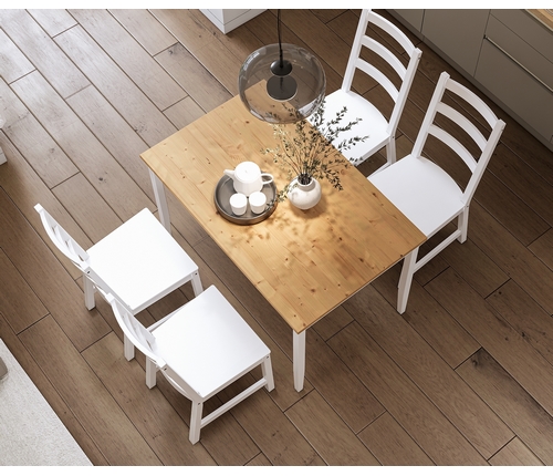 Обеденный комплект - стол Лым и 4 стула Нонбург (белый, светло-коричневый).