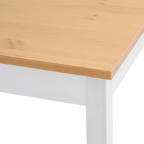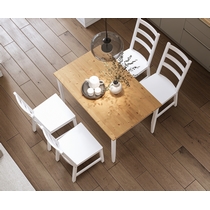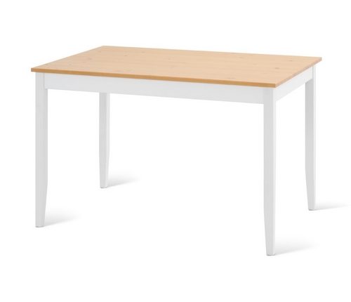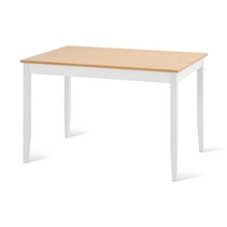 Прямоугольный обеденный стол Лым создает теплую и привлекательную атмосферу благодаря сочетанию белого корпуса и столешницы в светлом оттенке коричневого.