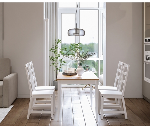 Комплект включает в себя стулья Нонбург и обеденный стол Лым, которые вместе создадут гармоничное пространство для приема пищи и отдыха.